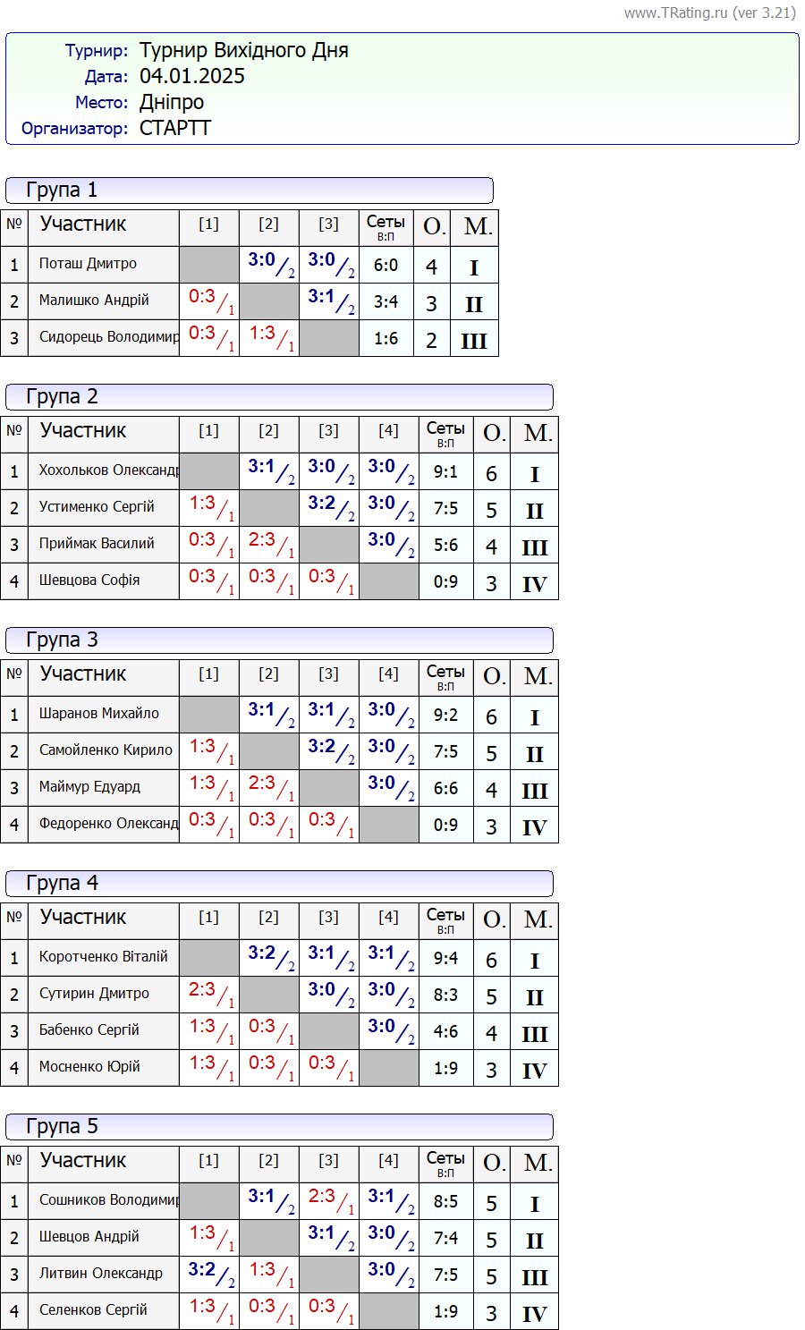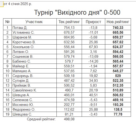 Результати турніру “Вихідного дня 0-500” за 04.01.2025