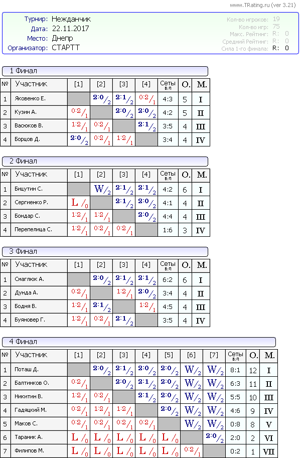 Результаты турнира Нежданчик от 22.11.2017г.