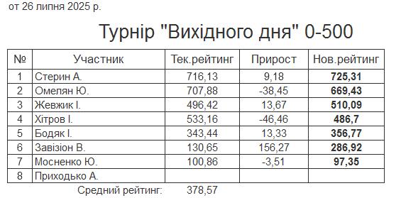 Результати турніру “Вихідного дня 0-500” за 26.07.2025