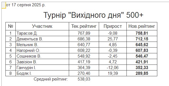 Результати турніру “Вихідного дня 500+” за 17.08.2025