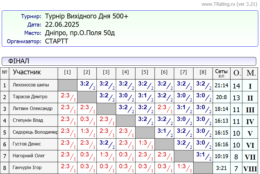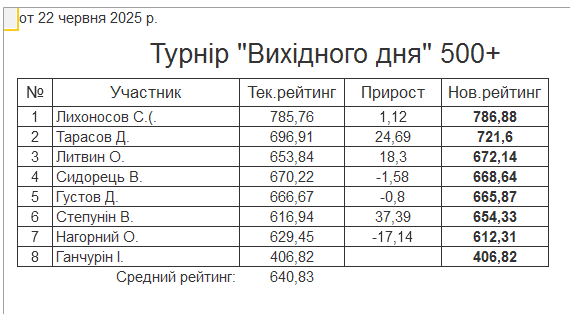 Результати турніру “Вихідного дня 500+” за 22.06.2025