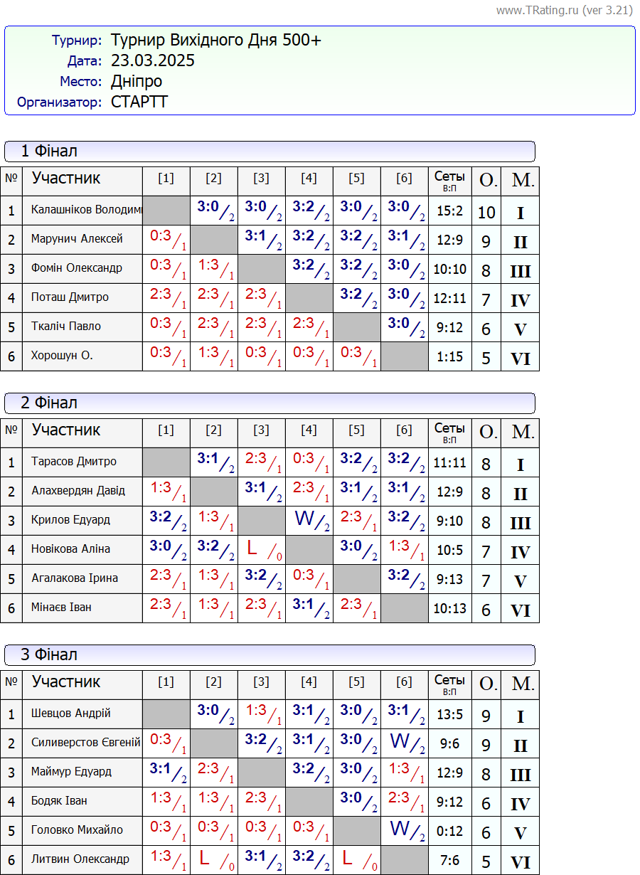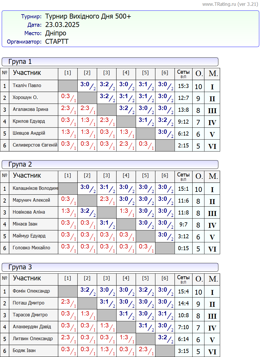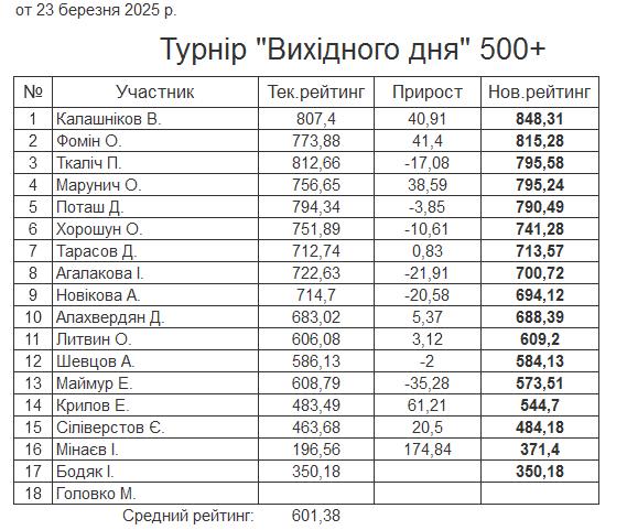 Результати турніру “Вихідного дня 500+” за 23.03.2025