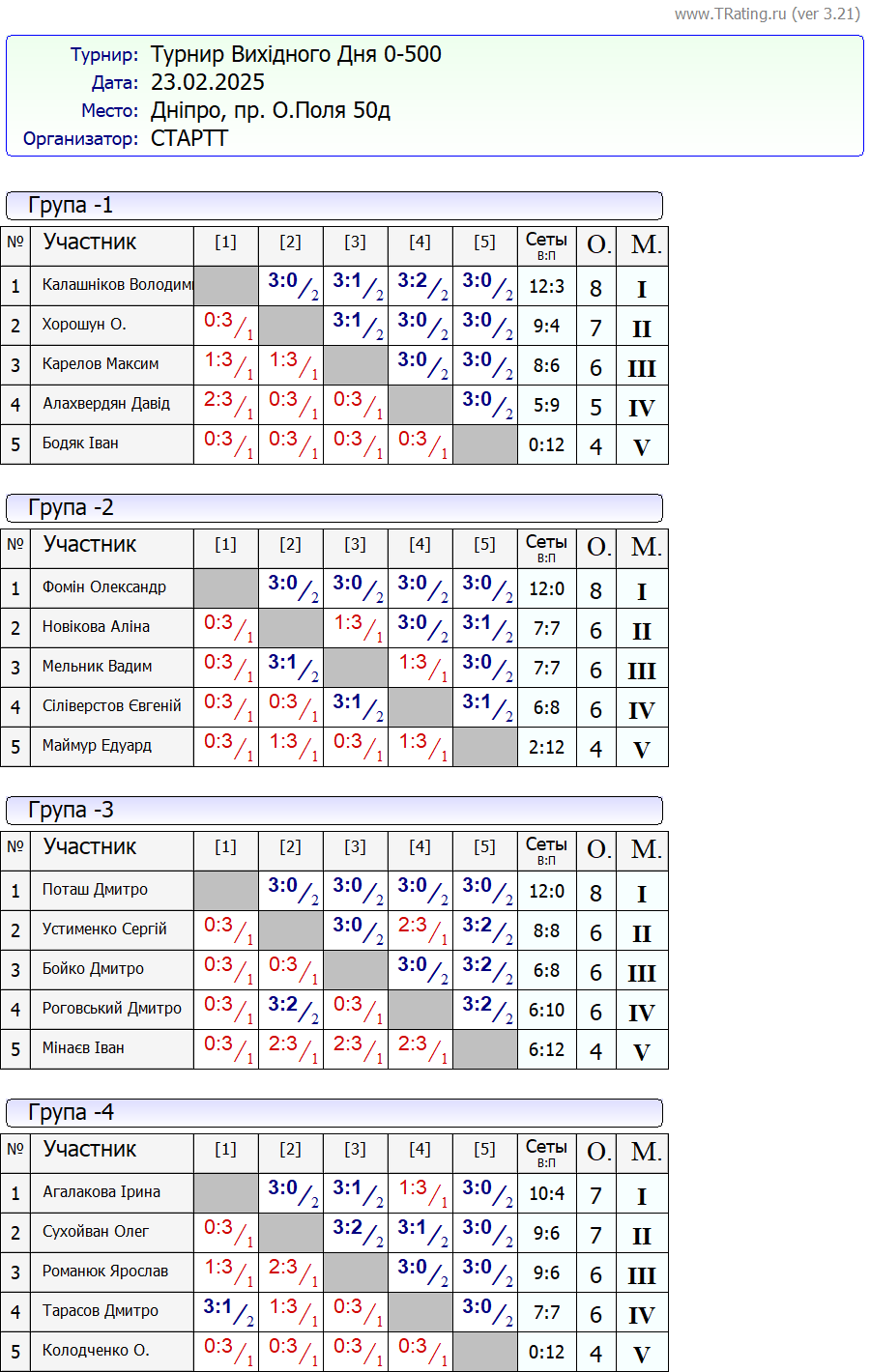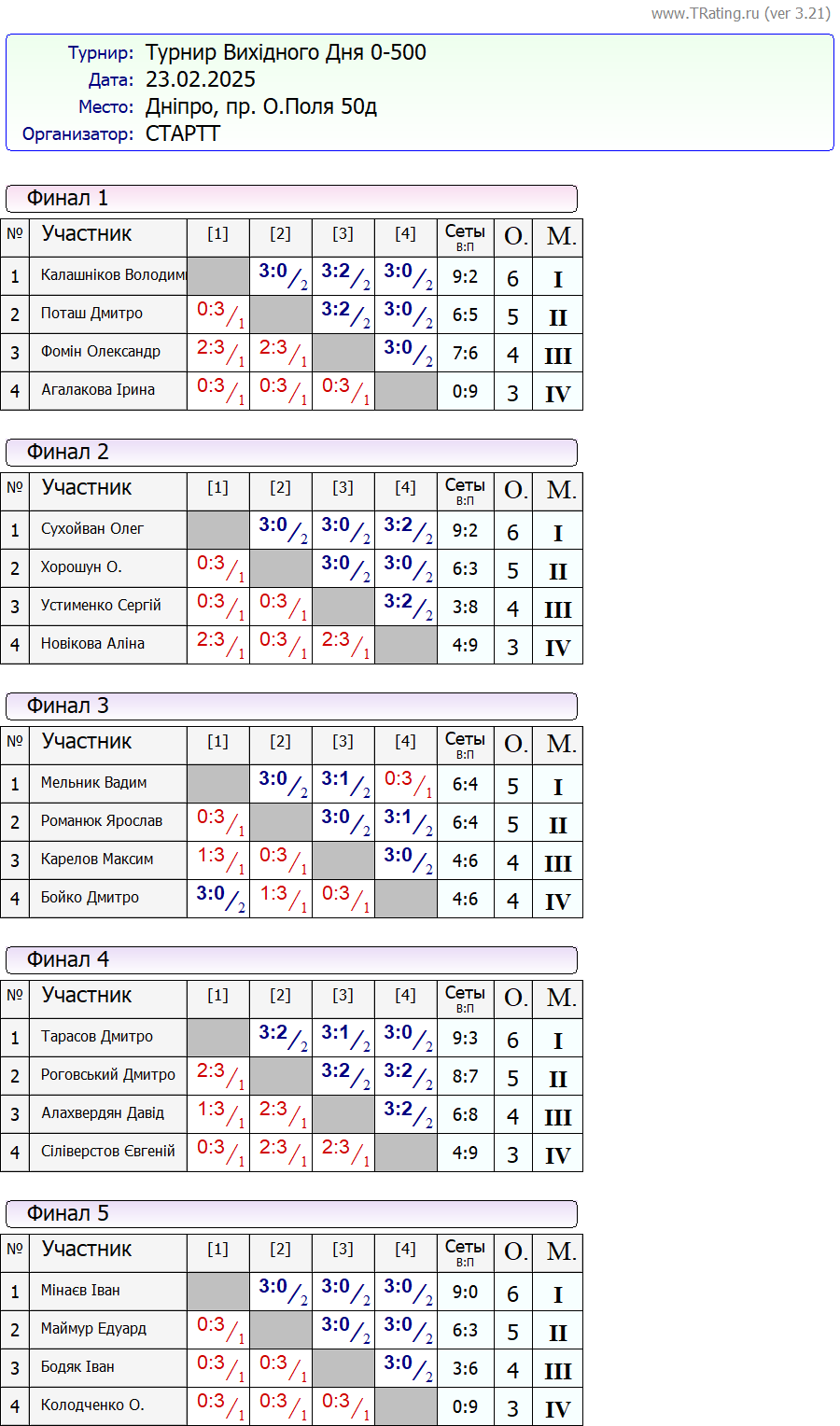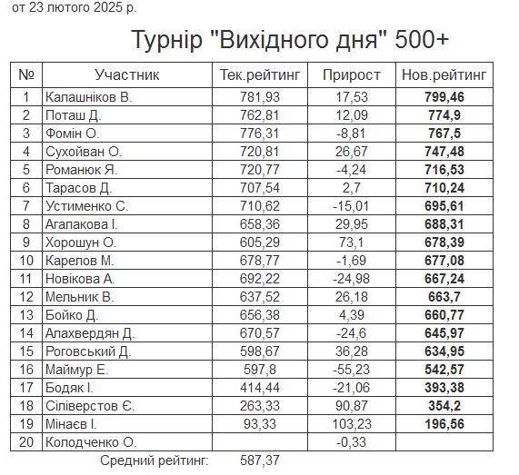 Результати турніру “Вихідного дня 500+” за 23.02.2025