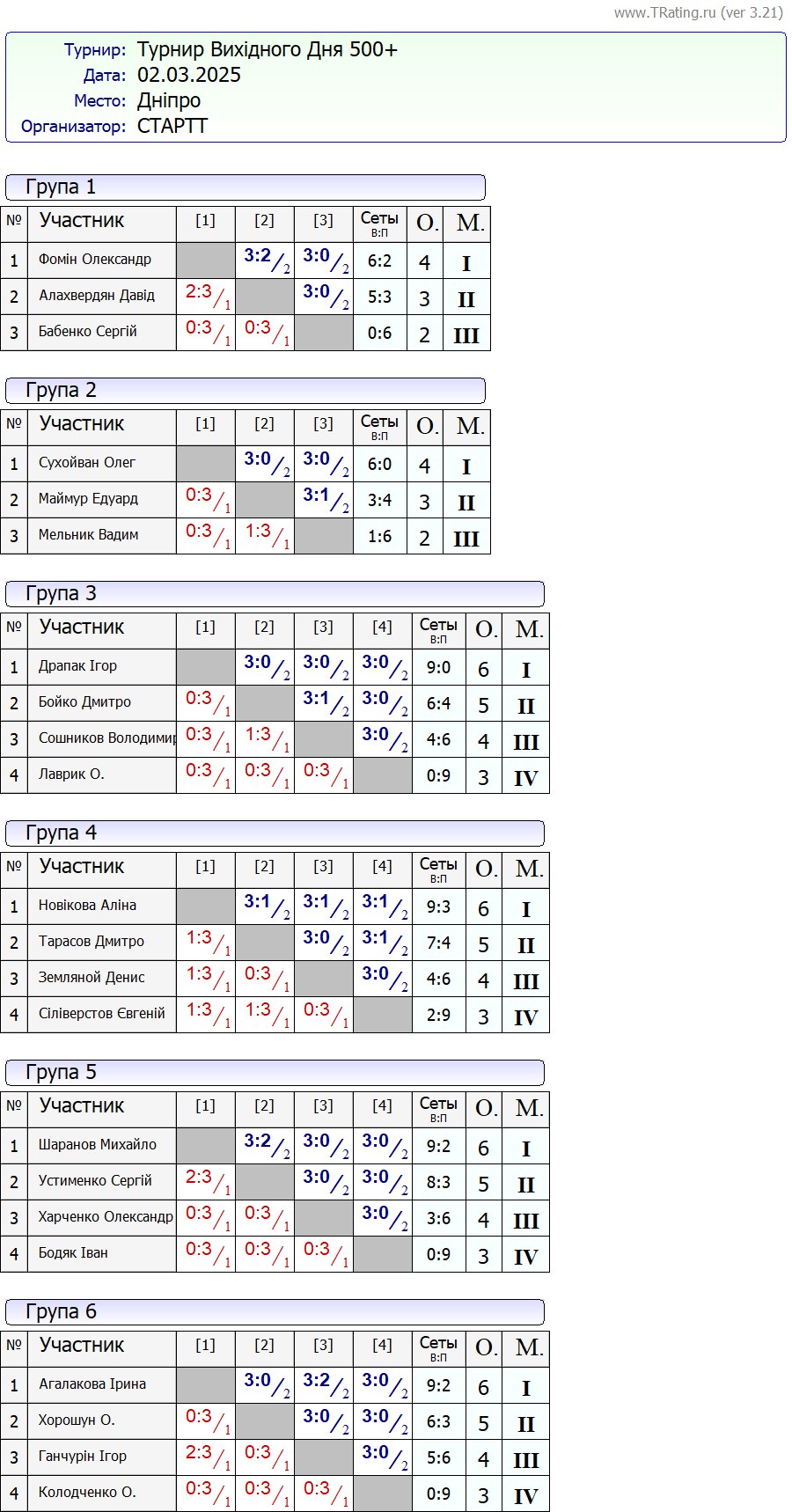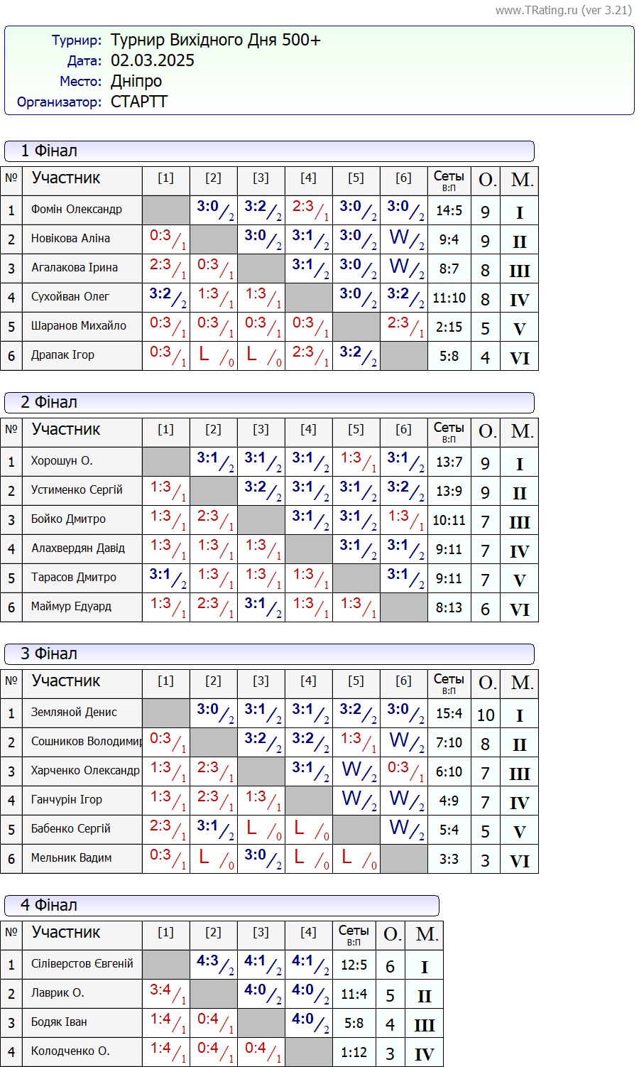 Результати турніру “Вихідного дня 500+” за 2.03.2025