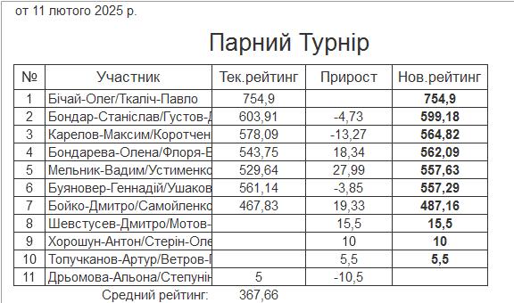 Результати “Парного турніру” за 11.02.2025