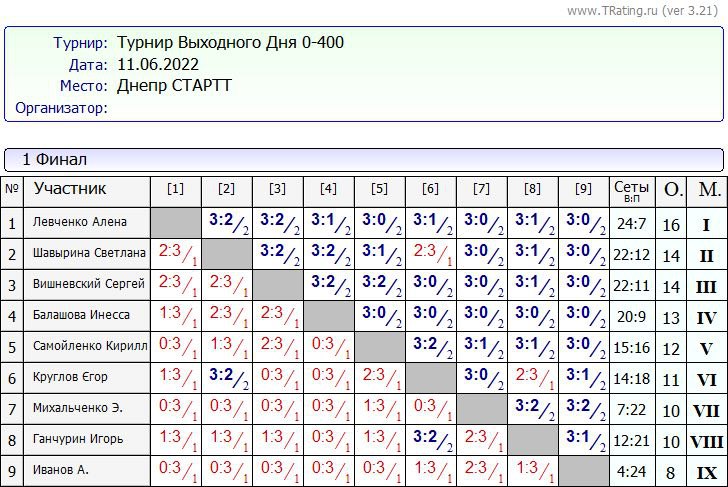 Результаты Турнира “Выходного Дня 0-400” за 11.06.2022
