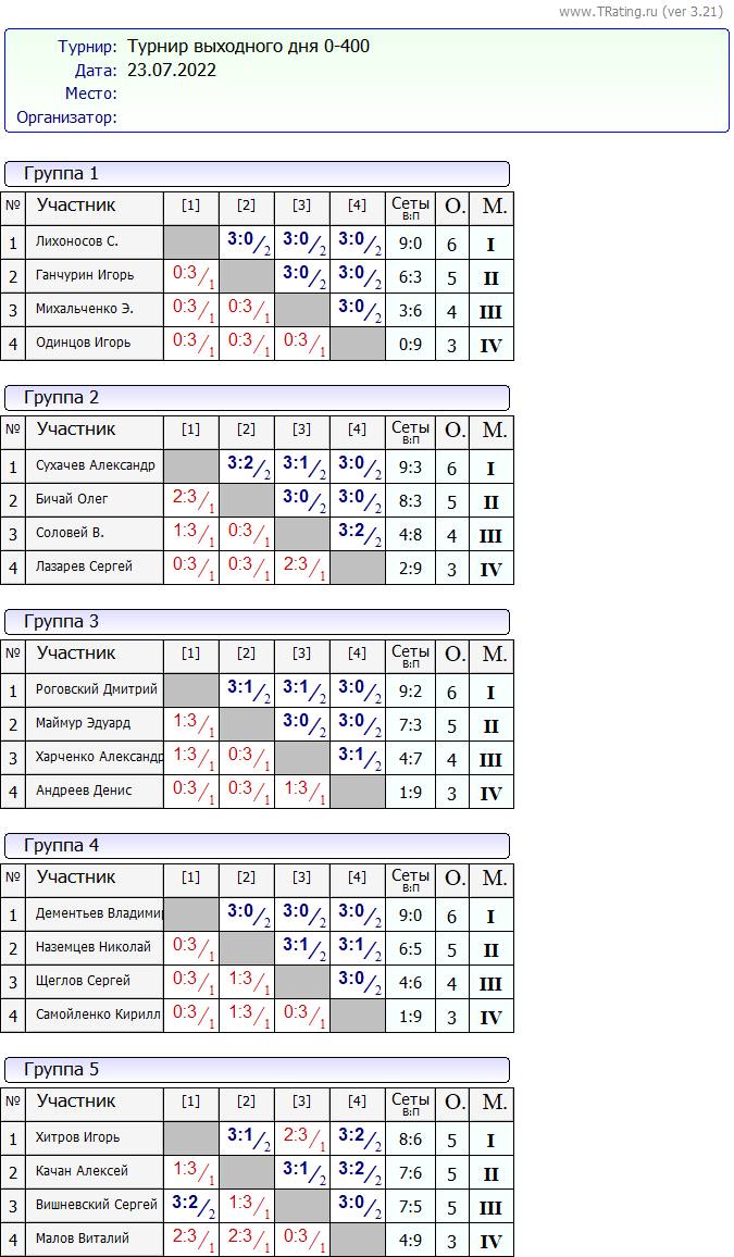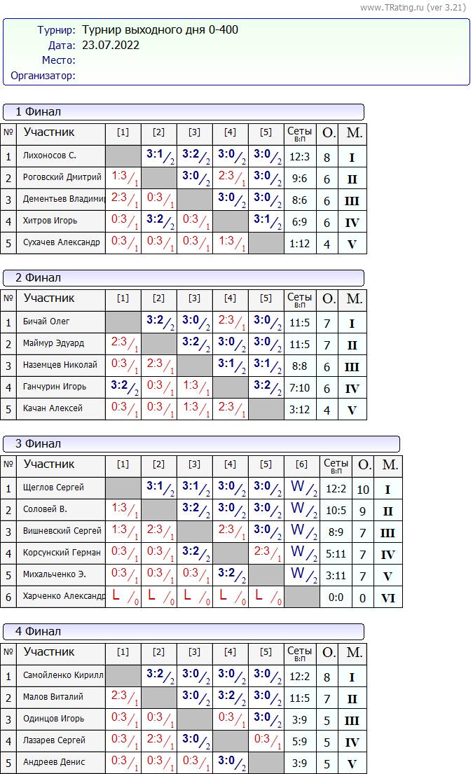 Результати турніру “Вихідного дня 0-400” за 23.07.2022