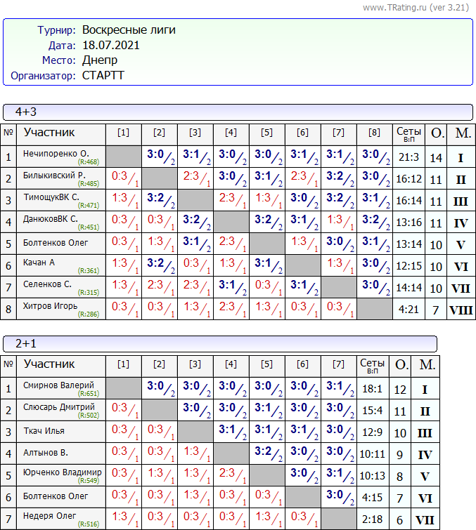 Результаты Воскресных Лиг 18.07.2021
