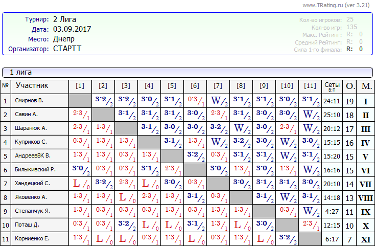 Результаты Воскресных лиг от 03.09.2017г