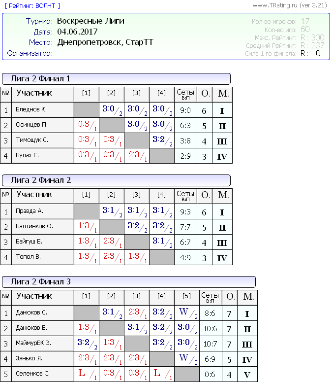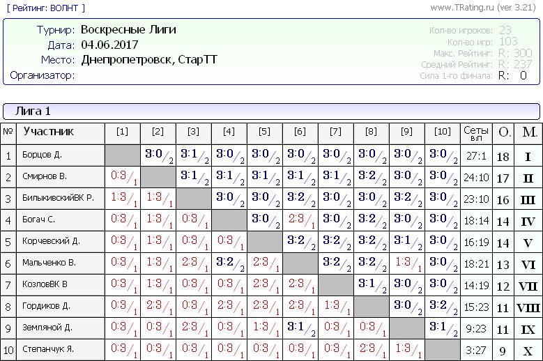 Воскресные лиги 04.06.2017г
