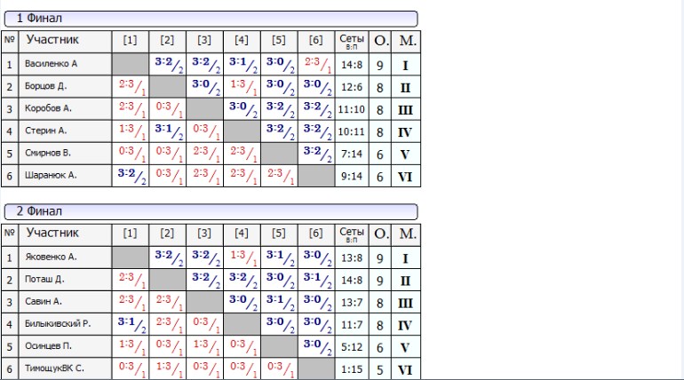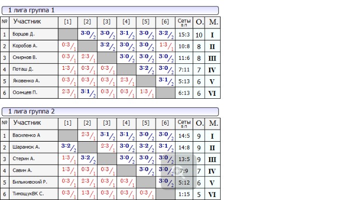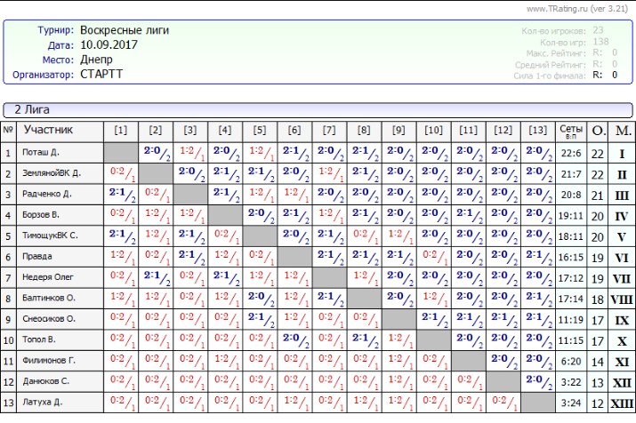 Результаты Воскресных лиг от 10.09.2017г