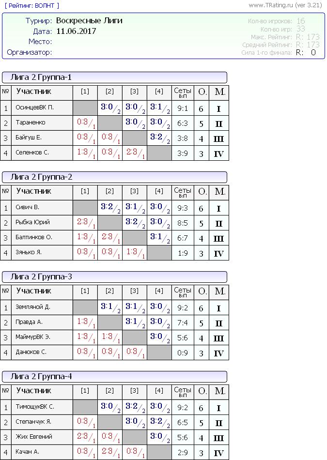 Воскресные лиги 11.06.2017г